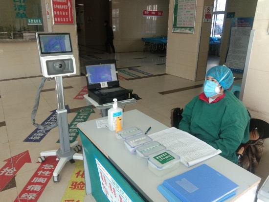 2月18日,記者在周口市中心醫(yī)院急診科看到,一臺(tái)醫(yī)用紅外熱像儀出現(xiàn)在急診科的大門口,前來(lái)就診的患者必須通過(guò)該熱像儀的檢測(cè)才能進(jìn)入急診科就診。“前來(lái)就診的患者只需要在熱像儀前經(jīng)過(guò),熱像儀就會(huì)在屏幕上自動(dòng)顯示患者的體溫信息,一旦出現(xiàn)體溫偏高的人,熱像儀就會(huì)自動(dòng)報(bào)警,并不需要人工檢測(cè),提高了檢測(cè)效率。”在該熱像儀前做紀(jì)錄的醫(yī)務(wù)工作者說(shuō)。 記者 張洪濤 攝