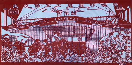 “我在為縣委林書記高鐵站送工創作一幅剪紙作品,你看看效果怎么樣?!苯?,西華縣奉母鎮剪紙藝人王銀生拿著剛剛創作的剪紙作品讓“疫情防控小分隊”提意見。