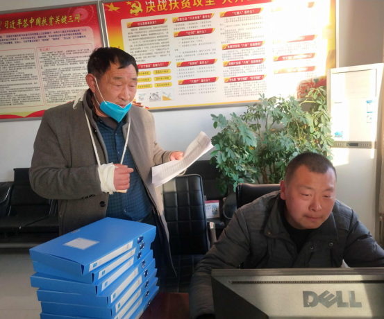 2月24日下午,在鹿邑縣產業集聚區姚莊行政村執勤卡點,右手臂打著夾板、扎著吊帶的村會計魯雙全在忙著指導匯總全村各地返鄉人員名單。今年已經59歲的魯雙全是一名有著20年黨齡的老黨員,自疫情防控工作開始以來,就一直堅守在一線,入戶宣傳、排查登記、消殺防疫、卡點執勤工作崗位上,他常說,“越是危難之時,黨員越要帶頭沖鋒在前”。