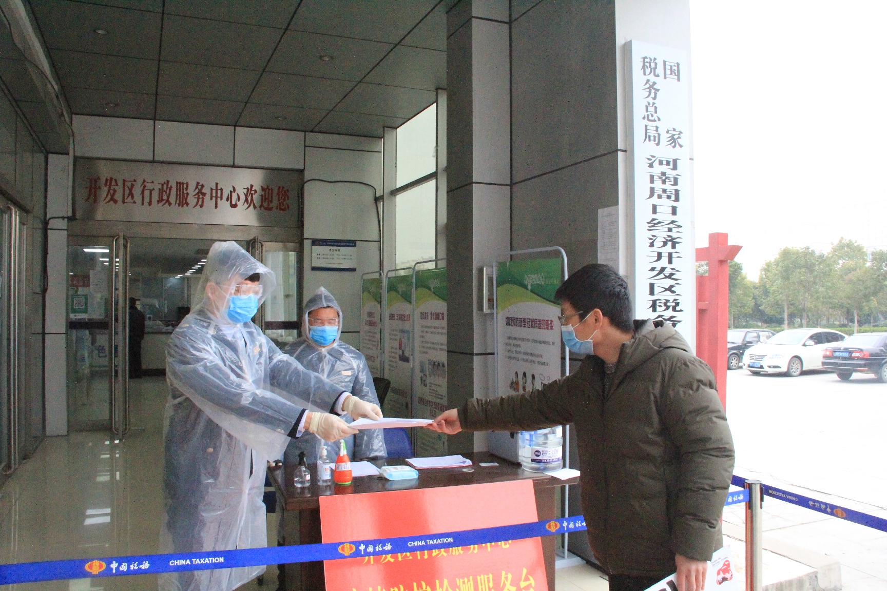 開發區稅務局第一稅務分局堅持以“涉稅事、網上辦、非必須、不進廳”為原則,動員全局力量,通過微信平臺轉發宣傳防疫期間辦稅事項通告以及各類業務線上辦理操作流程,全力引導納稅人和繳費人線上辦稅。對必須線下辦理的涉稅業務實施預約錯峰辦稅,根據納稅人繳費人業務咨詢類型、復雜程度等合理安排辦稅時間,做好體溫檢測和人身防護。業務辦理實行“納稅人不進大廳、資料傳遞辦理業務”的模式,前臺兩個業務受理人員對接收的資料先進行消毒登記,然后進行傳遞辦理,確保防疫期間各項涉稅業務安全辦理。