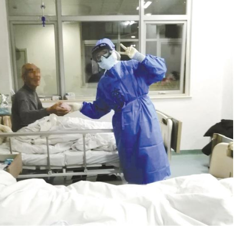 “這是我們應該做的工作。您辛苦了,一定要加油哦。”做完檢測、量完體溫,胡奔奔將9號床患者的手輕輕放進被子,并為他掖了掖被角。