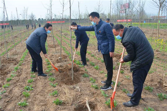 3月12日,開發區黨委書記王文峰、管委會主任劉濤帶領開發區領導班子、開發區中層干部和有關單位職工,在創業路南段寧洛高速北側舉行義務植樹活動。