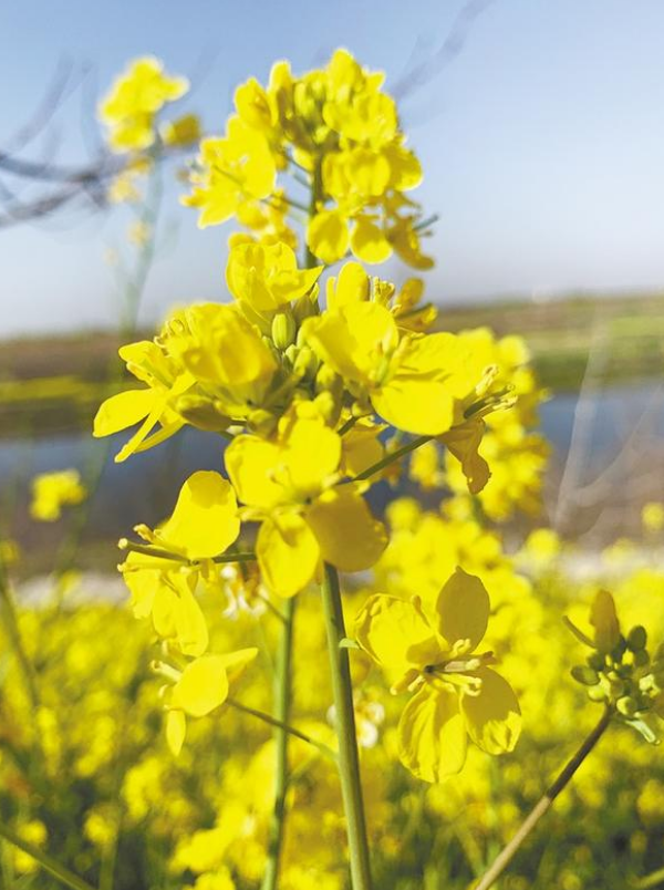 進入油菜開花時節,田野間一片金黃。油菜花競相怒放,千姿百態,花團錦簇,放眼望去,花海十分壯觀,大地都像披著一塊金黃的地毯。花粉中含有豐富的花蜜,引來彩蝶與蜜蜂飛舞,美麗風景讓人流連。