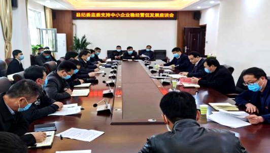 今年3月14日、16日,縣委常委、紀委書記、監委主任胡友濤分別主持召開支持中小企業穩經營促發展座談會、紀檢監察系統支持企業發展政策落實情況監督檢查工作推進會,多次到金丹科技、百年康鑫等企業調研指導,現場辦公、解決問題,推動工作落實。3月17日、18日,縣紀委副書記、監委副主任趙玉祥分別召開了縣紀委監委協作區區長、部分派駐紀檢監察組組長會議,近一步明確任務,壓實責任,先后到宜路鎮、秋渠鄉等鄉鎮督促指導各鄉鎮紀委開展支持企業發展政策落實情況監督檢查工作。