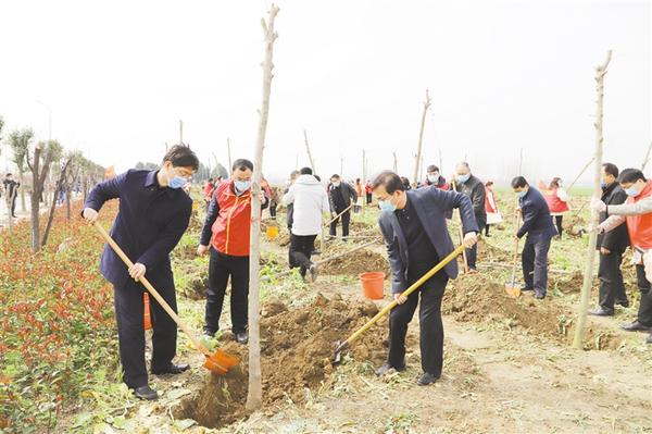 三埋土、兩踩實、一提苗……陽春三月,豫東大地植綠正當時。縣領導崔衛國、李建軍、王偉等和廣大志愿者、群眾一起揮鍬鏟土,栽植新綠,為鄲城大地再添綠意。
