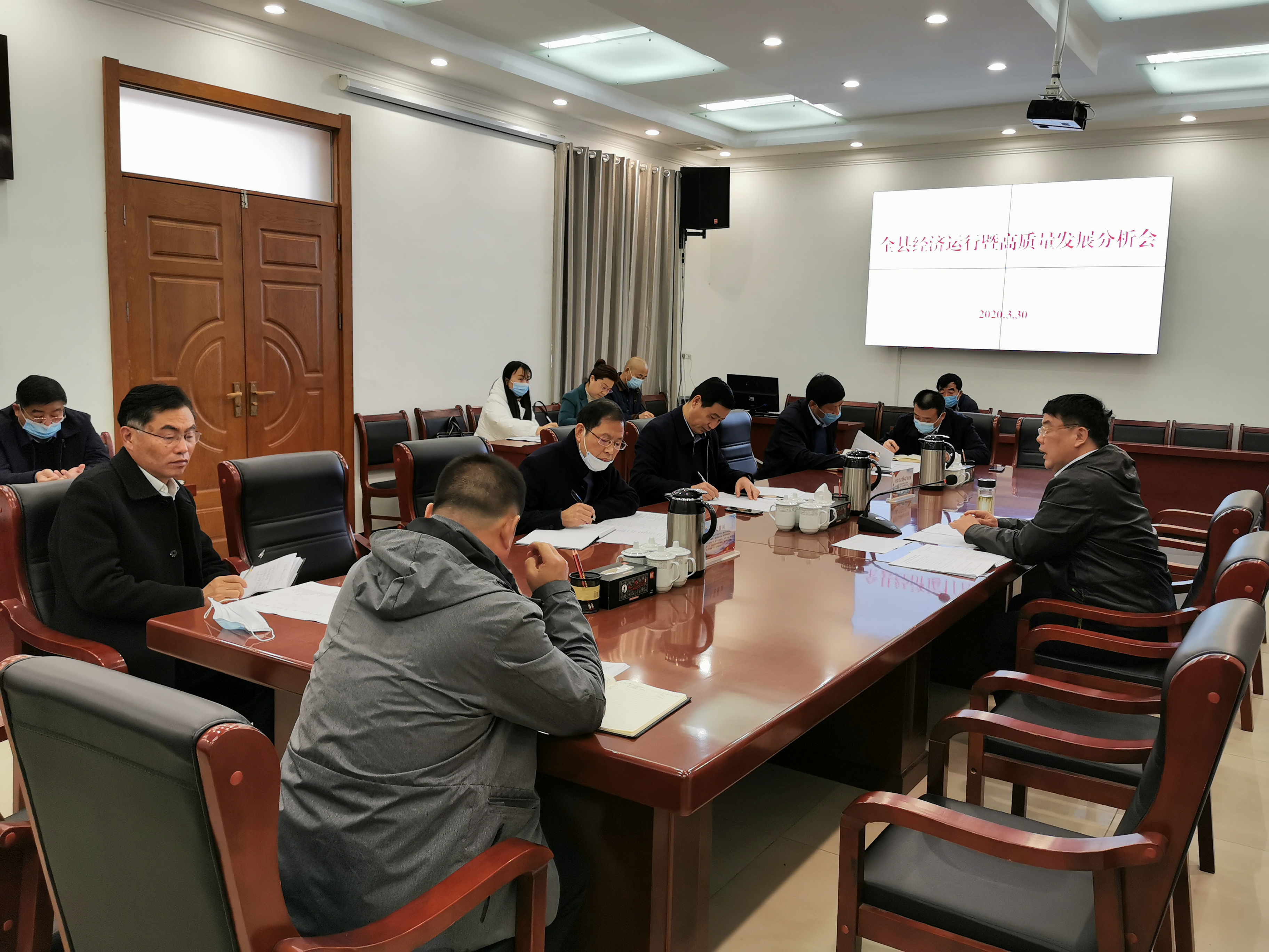 3月30日下午,鹿邑縣委常委、常務副縣長陸志杰主持召開2020年經濟運行暨高質量發展分析會。會議通報了1至2月份全縣主要經濟指標運行情況,科學研判當前經濟形勢,分析調度高質量發展各項指標,對一季度經濟運行任務進行再動員、再部署。
