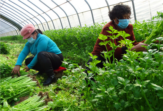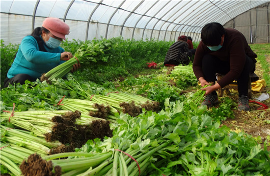 昨日,沈丘縣周營鎮豫東惠農家庭農場大棚蔬菜種植基地,“農業工人”們正在忙著采收訂單生態芹菜。近期來,沈丘縣在抓好疫情防控的同時,出臺系列扶持政策,促進現代設施農業有序恢復生產,帶動當地貧困村民就近務工增收致富。
