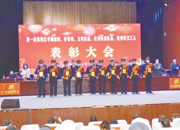 4月17日下午,淮陽區(qū)在區(qū)群藝館報告大廳對孝順媳婦、好婆婆、文明家庭、優(yōu)秀執(zhí)法隊員、優(yōu)秀環(huán)衛(wèi)工人進行了表彰。