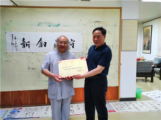 近日,當(dāng)代指書大家李云飛受邀到周口報業(yè)集團(tuán)書畫院進(jìn)行書法交流。交流現(xiàn)場,李云飛揮毫潑墨,創(chuàng)作了多幅書法作品。活動結(jié)束后,周口報業(yè)集團(tuán)王社長為李云飛頒發(fā)了聘書,聘請李云飛為周口報業(yè)集團(tuán)書畫院名譽(yù)院長。