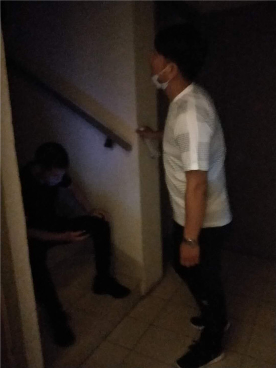 按照事先摸排到的信息,抓捕組民警終于在南京市江寧區(qū)一小區(qū)內(nèi)找到了嫌疑人的居住地,而嫌疑人卻不在屋內(nèi)。于是,民警們便在嫌疑人家門“守株待兔”,群里發(fā)來幾張民警坐在樓梯口蹲守照片。等待是漫長的,一直等到晚上10時許,嫌疑人始終沒有出現(xiàn)。民警通過嫌疑人門把手上幾天前的一張廣告單頁判斷,嫌疑人很有可能已經(jīng)不在此居住,便撤離了蹲守點。