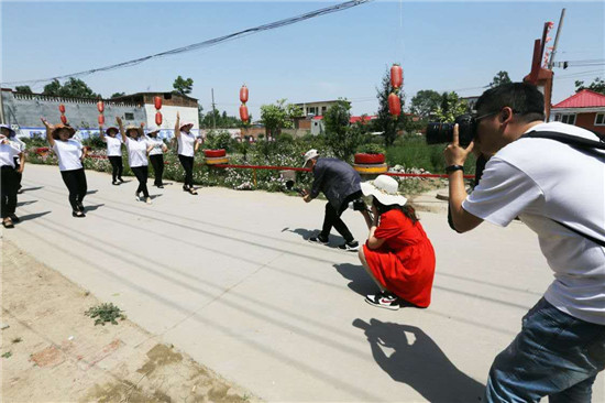 采風期間,10多名專業攝影師奔赴奉母鎮前邵村、前于王村以及孝賢碑林等地,進行實地探訪采風。前邵村是當地有名的傳統村落,村里文化氛圍濃厚,先后走出10多位戲曲方面的國家一級演員。在該村,一支業余的文藝宣傳隊引起攝影家們關注的目光。大家即興表演了兩三個節目,引得攝影家們極大興趣,不停按下快門拍攝。