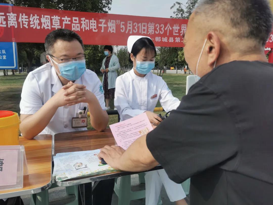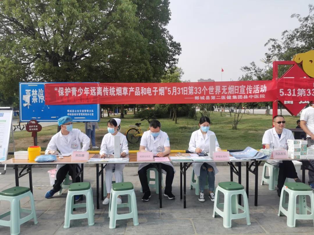 今年5月31日是第33個世界無煙日,本次主題是“保護青少年遠離傳統煙草產品和電子煙”。5月30日上午,鄲城縣第二醫療健康服務集團縣中醫院在世紀廣場開展了義診宣傳活動,進一步加強煙草危害和控煙政策宣傳,科學引導青少年樹立拒絕傳統煙草產品和電子煙的健康理念,遠離煙草危害,保護青少年身心健康。