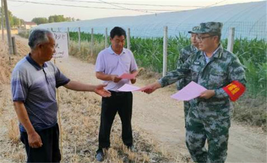 鎮(zhèn)基干民兵深入農(nóng)家院落、田間地頭,向廣大村民發(fā)放禁燒傳單,講解焚燒秸稈的危害,及時勸阻村民在公路上打場曬糧。積極動員村民簽訂十戶聯(lián)保承諾書,讓禁燒政策家喻戶曉、人人皆知。與收割機手簽訂控塵協(xié)議書500余份,與群眾簽訂十戶聯(lián)保責任書1萬余份,營造了全民禁燒的濃厚氛圍。