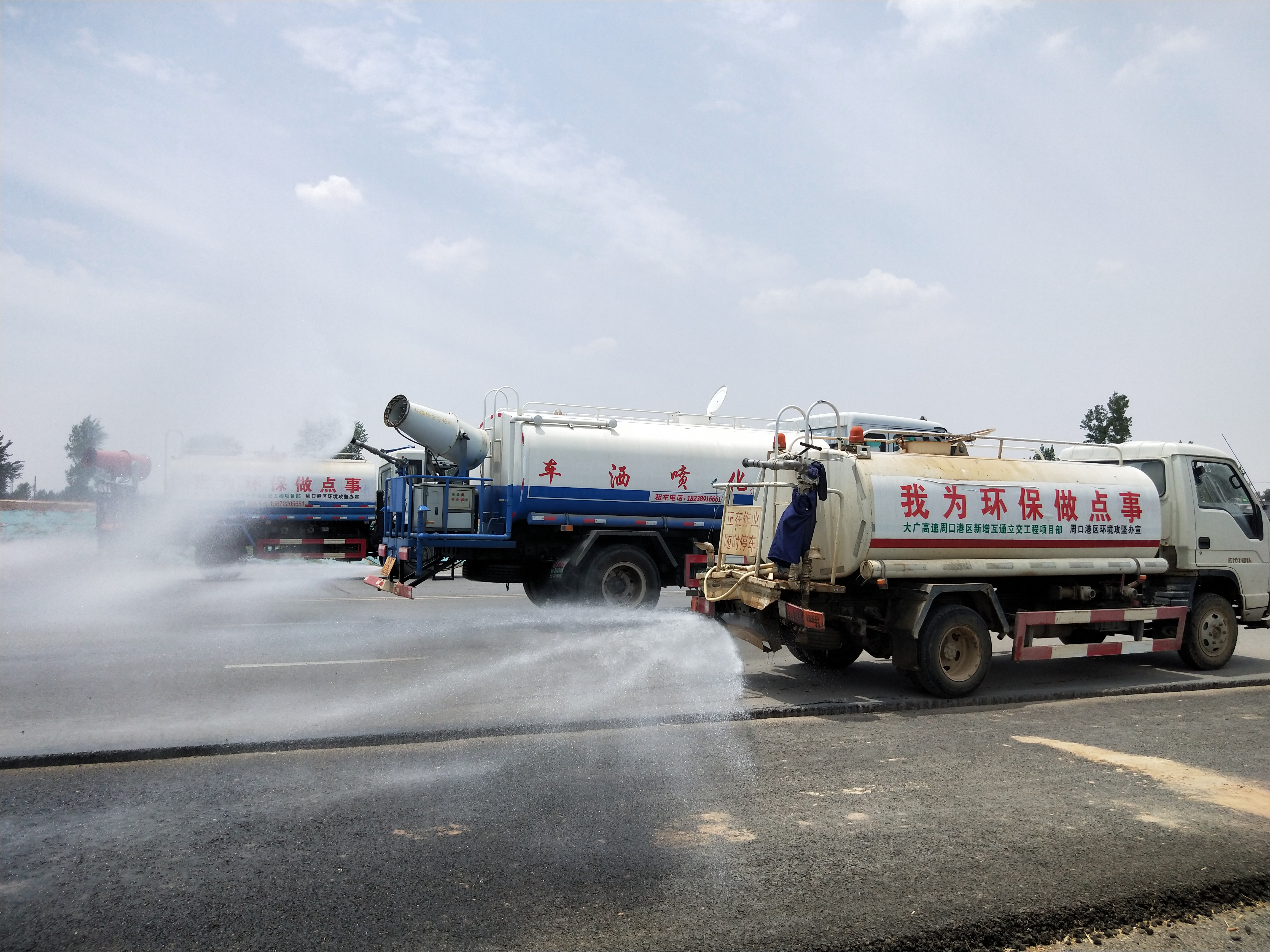 大廣高速港區互通立交項目工地負責人劉百輝介紹,該工地目前投入4臺灑水車、4個固定小型霧炮,每天早晨6點30分起至晚12點結束,不間斷噴灑工地門前1公里周項路段,在做好工地日常環保噴灑的同時,為維護工地周邊環境出一份力。