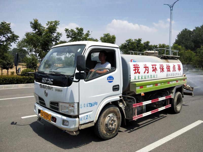 當天上午,未來家園四期工地上,灑水車司機黃玉成完成施工場地噴淋工作后,乘著給水箱加水的間隙,休息了一下,隨后駕車前往分包的平原東路進行噴灑。黃玉成告訴記者,“在做好工地日常環保灑水工作的同時,我們公司積極響應港區號召,主動做好工地周邊道路的抑塵灑水工作,根據工作安排,每天在分包的2公里路段灑水四次,為港區環保工作盡綿薄之力。”該項目負責人楊春良表示:“作為一家施工單位,能夠為當地環保工作做一些力所能及的貢獻,我倍感榮幸,我代表高創建工股份有限公司承諾,我公司將一如既往地做好環保工作,維護好周口港區的碧水藍天。”