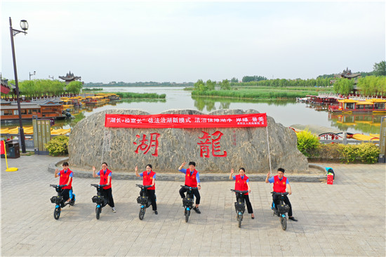 為進一步健全生態環境行政執法與檢察監督銜接工作機制,加強檢察機關與河長制辦公室及其成員單位的協作配合、監督制約,長效推動提升淮陽區河湖治理與管護水平,維護優化河湖生態功能。近日,在淮陽區龍湖東碼頭舉行了“湖長+檢察長”依法治湖新模式,法治保障湖凈、岸綠、景美宣傳活動。該區檢察院黨組書記、檢察長嚴新愛、區文改委黨委書記、主任、湖長李俊志出席了活動,區河長辦公室主任、水利局長張麗、區龍湖管理處主任韓長峰、區檢察院副檢察長曹長亮、區自然資源局副局長蔡慶民相關負責同志參加。