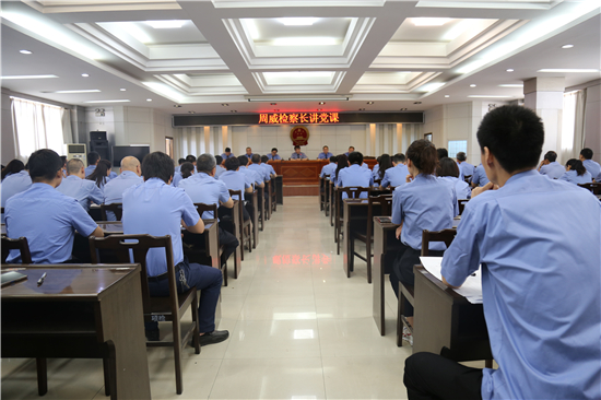 近日,項(xiàng)城市人民檢察院黨組書記、檢察長周威為全院干警講“強(qiáng)化四個意識,推進(jìn)機(jī)關(guān)黨建上水平”專題黨課。