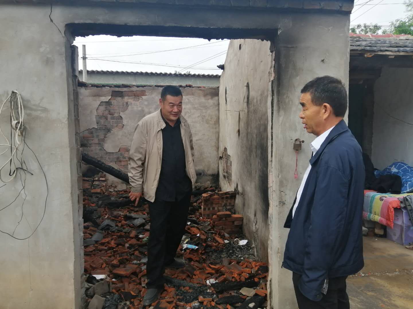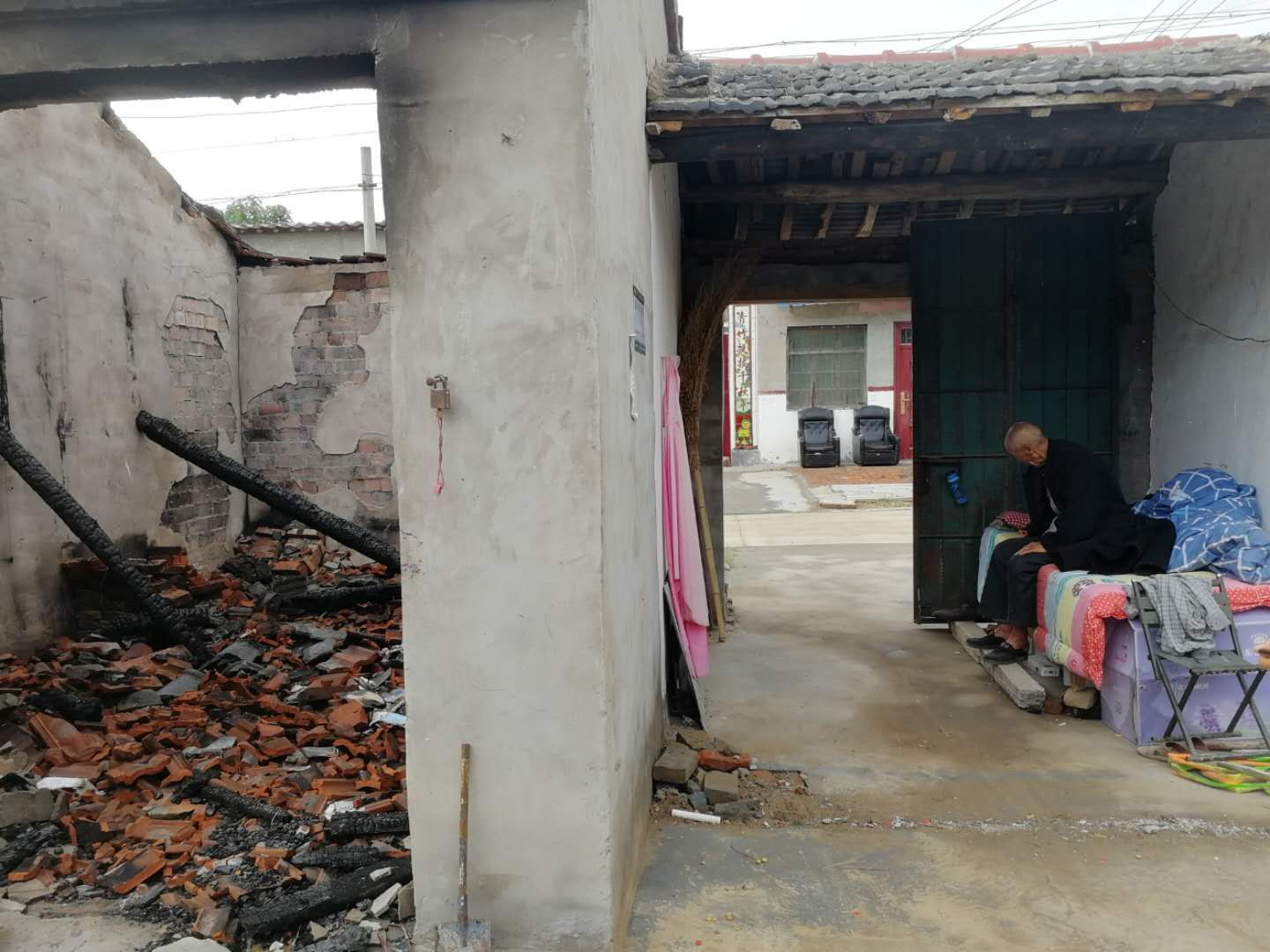 聽完情況后,督導組立刻和駐村工作人員一起到李洪范家查看情況,現(xiàn)場主屋已經(jīng)全部燒毀,屋里到處是瓦礫......李洪范站在被燒毀的房屋里,表情木納的自言自語道“燒得一干二凈,什么都沒了,這以后咋弄呀。”現(xiàn)場詢問其生活情況時,李洪范說,“當天,鄉(xiāng)里邊就送來了米、油和錢。村長也送來了幾件衣服,現(xiàn)在就是沒有地方住。”