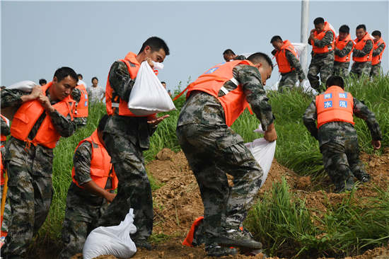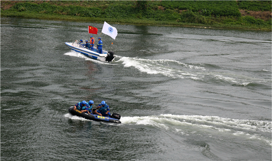 上午9時,隨著田林“開始演練”命令的下達,60人組成的搶險突擊隊,緊張有序開展了五個科目的演練。突擊隊員通過巡堤查險,觀察堤坡及堤腳附近有無滲水、管涌、裂縫、滑坡、漏洞等險情。發現險情后,迅速采取導滲、截滲等搶險措施,確保險情得到及時、正確、有效的處理或控制。發現落水人員,四艘沖鋒舟分工明確,立即前往落水地點進行救助。