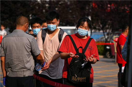 7月7日上午,2020年高考迎來開考,周口市10萬考生步入考場。圖為周口考點的考生入場。