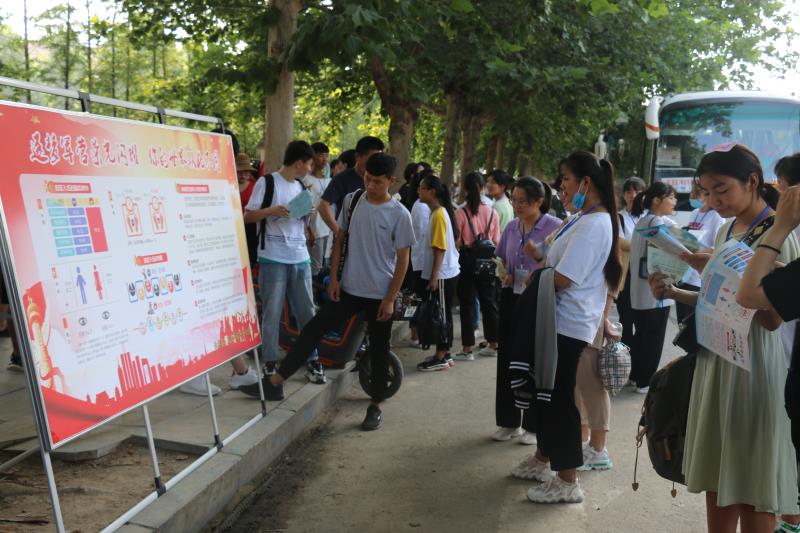在該縣各標準化高考考點征兵宣傳現場,人頭攢動、熱鬧非凡。“好男兒,來當兵”大紅條幅和“把忠心獻給祖國,把青春獻給軍營”“參軍報國盡義務,熱血青年競風采”的大型宣傳牌格外引人注目,內容豐富的征兵宣傳展板一字排開,《征兵宣傳手冊》《大學新生應征入伍宣傳單》《征兵政策宣傳解讀手冊》等征兵宣傳資料擺放在咨詢臺上一目了然,吸引了眾多的考生和家長駐足觀看,圍著咨詢臺詢問有關征兵事宜。
