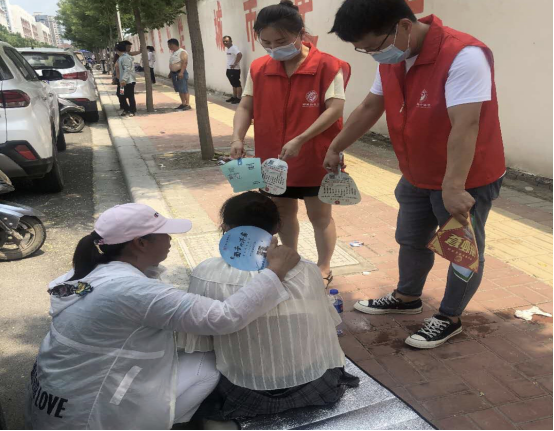 在各考點(diǎn)志愿活動(dòng)現(xiàn)場(chǎng),志愿者們?cè)缭绱钇鹫陉?yáng)帳篷,擺好桌子、礦泉水,防暑應(yīng)急藥品等用品,為考生和家長(zhǎng)提供休息場(chǎng)所,在炎熱的夏日里為他們送上一份清涼和安心。同時(shí),他們還維持考點(diǎn)周邊市容環(huán)境的整潔有序,對(duì)于大聲喧嘩等不文明行為及時(shí)勸阻;協(xié)助交警疏導(dǎo)交通,減少道路噪音對(duì)考試的影響,確保道路交通安全有序。期間,陸續(xù)有家長(zhǎng)及考生前來(lái)咨詢就診,志愿者們熱情接待,為其測(cè)量血壓,提供礦泉水、解暑藥品等,得到家長(zhǎng)及考生的一致好評(píng)。