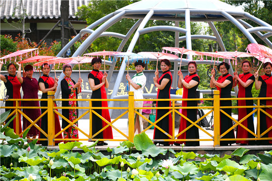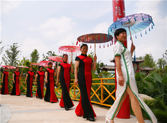 周口森林公園經過近年的建設已經成為市區休閑的一處好去處,風景優美,園林幽深,目前,盡管森林公園附近道路施工,進出還不方便,但是仍吸引著很多居民前去休閑游玩,愛美的大媽們更是在這里秀一把,7月16日上午,來自市區模特隊的大媽們,穿著靚麗的旗袍,在荷葉飄香、假山園林秀林深處,開心地進行一場模特秀。