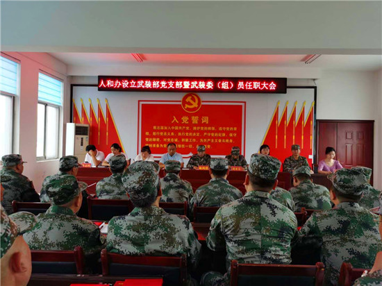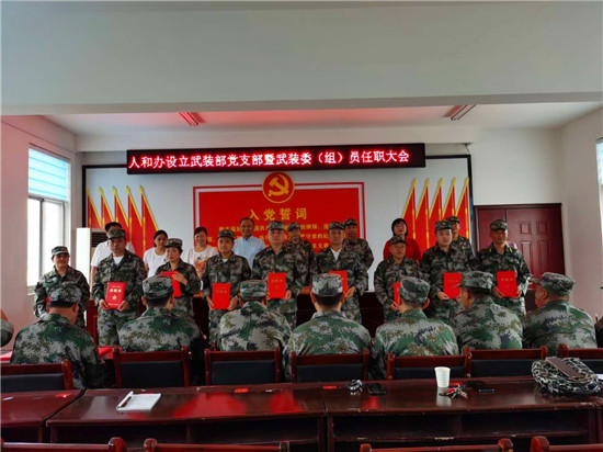 本次大會確定在人和辦武裝部建立1個黨支部,人和辦武裝部長王超任黨支部書記,在轄區9個社區,每個社區建立1個3人黨小組,黨小組成員包括在該社區設置的1名兼職武裝委員和在該社區基本單元網格設置的2名兼職武裝組員。每個黨小組編入人和街道武裝部黨支部,并報區人武部備案,制定任命證書。