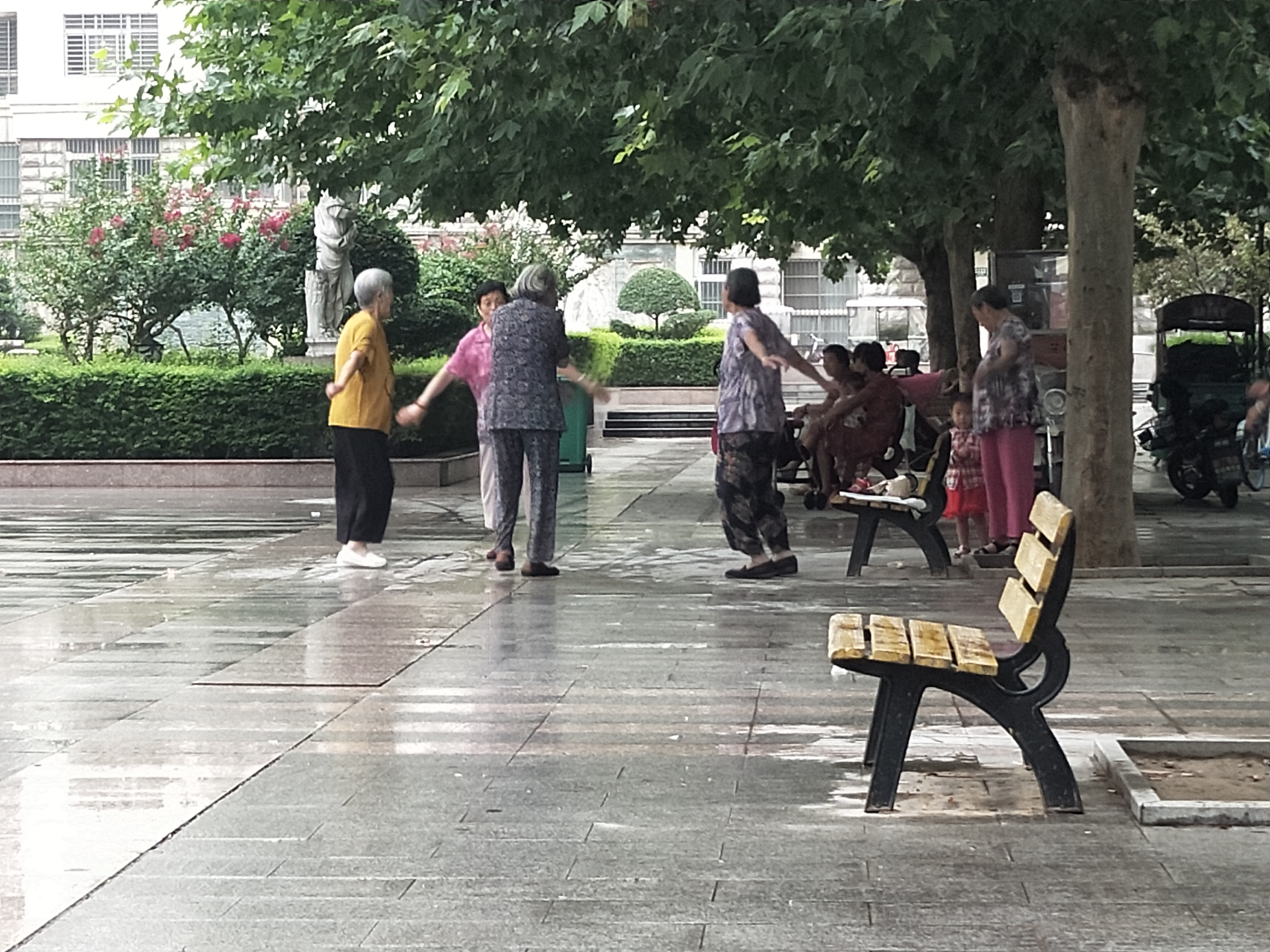 上午8點,天空隱約下著小雨,記者在北門小區廣場的噴泉旁邊轉轉。幾位70多歲的老人坐在排椅上,音響里傳來很大的戲曲聲回蕩在廣場上?!白疃鄷r有十幾個人吧,每天早上8點左右開始做操,音響聲音調得比較大,我家恰好就在這噴泉廣場西邊,在家里聽得很清楚。”李女士講,由于工作原因,她經常上夜班,想睡個好覺也不能如愿,她也向物業反映過,可是一直沒有什么效果。