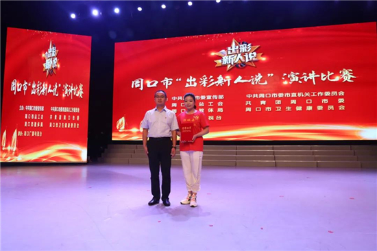 8月4日,由中共周口市委宣傳部、中共周口市委市直機關工作委員會、周口市總工會、共青團周口市委、周口市教體局、周口市衛生健康委員會主辦,周口市廣播電視臺承辦的周口市“出彩新人說”演講比賽落下帷幕,來自各系統的24名選手展開了激烈角逐。鄲城縣第二醫療健康服務集團縣中醫院胡奔奔獲得了一等獎的好成績。
