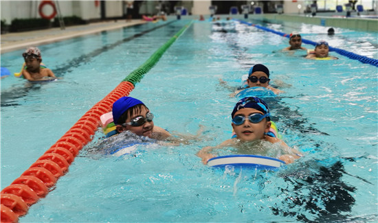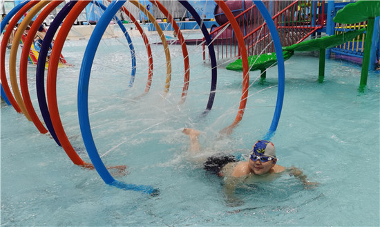 8月16日,不少家長帶孩子在周口游泳館游戲嬉戲。持續的高溫天氣讓周口進入“燒烤”模式,水里的清涼世界成了消暑降溫的好去處,不少市民選擇到游泳館、水上游樂場館,既可以游泳鍛煉身體,也可以和孩子們在水中親子玩耍。