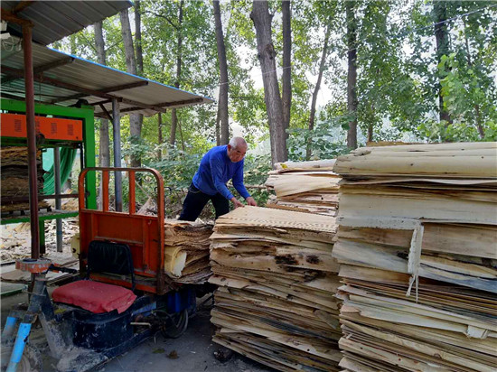 8月28日,商水縣練集鎮(zhèn)馬莊村的四紅木業(yè)有限公司板材加工車間內(nèi),機(jī)器轟鳴,工人忙著斷木、打圓、卷板,一張張板材被切割后,拉到曬板場(chǎng)晾曬。“有了這份收入,去年全家脫貧摘帽。”正在車間里搬運(yùn)板材的馬莊村貧困戶王天林對(duì)記者說。