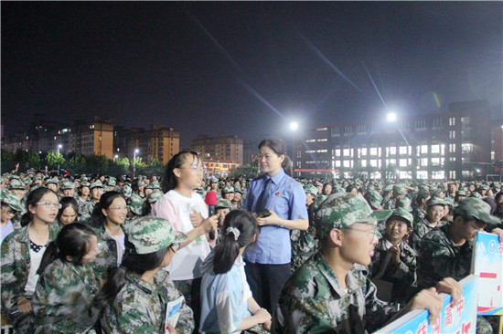 "你們正處于人生的花季,知識是養分,那么法律知識就好比是殺蟲劑,要學好,更要用好,要做到知法、守法、用法,在法治護航下遠離校園欺凌,拒絕電信網絡詐騙,不義之財不可取,防范之心不可無……”。8月29日晚上7點,黃昏謝去,暮色已經模糊起來了,伴著淺淺的晚霞,扶溝縣檢察院檢委會專職委員郁玉琴帶領該院“女檢察官特別護未隊”的三名女檢察官到扶溝高中為正在接受軍訓的1600余名高一新生們上了一堂別開生面的法治課。
