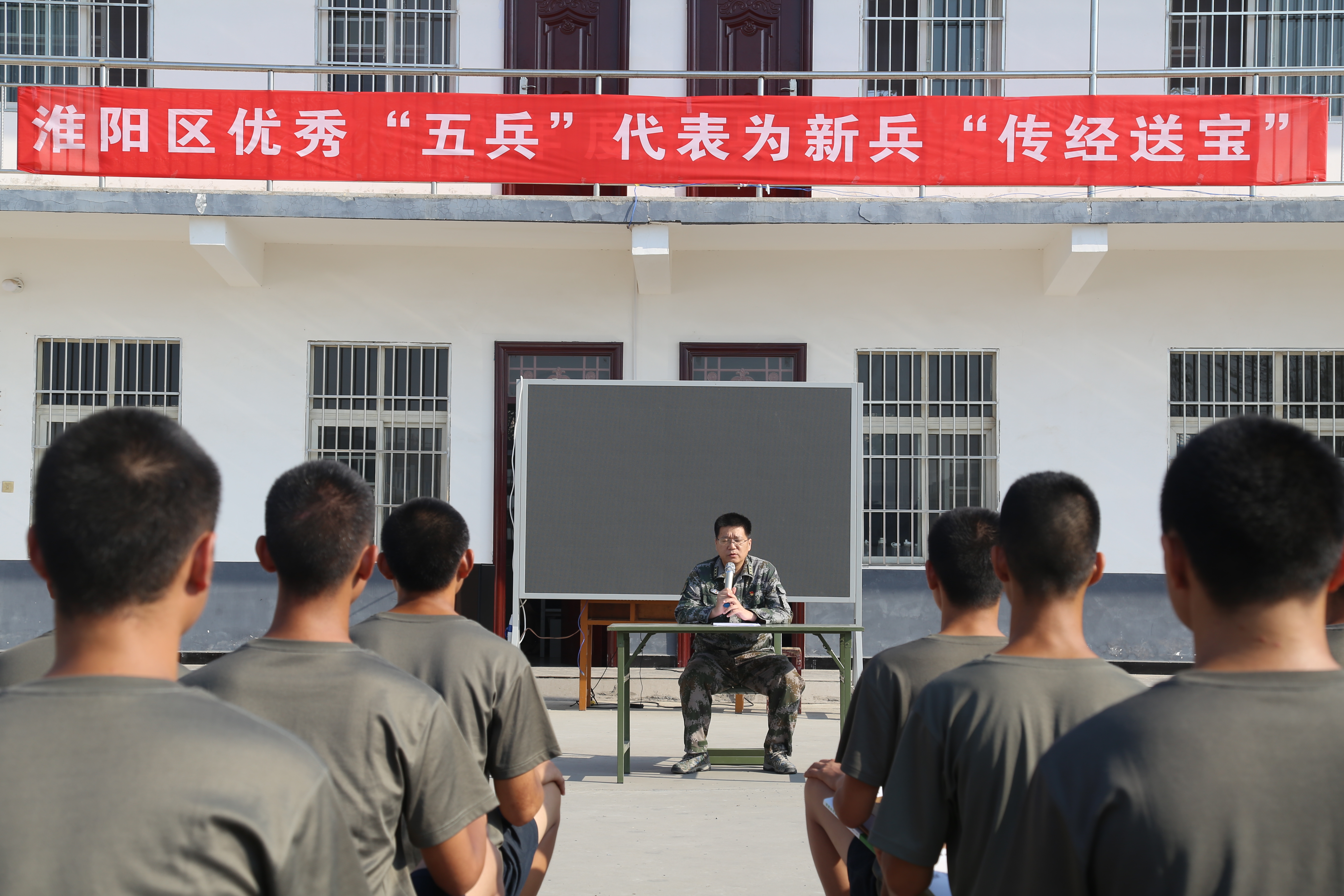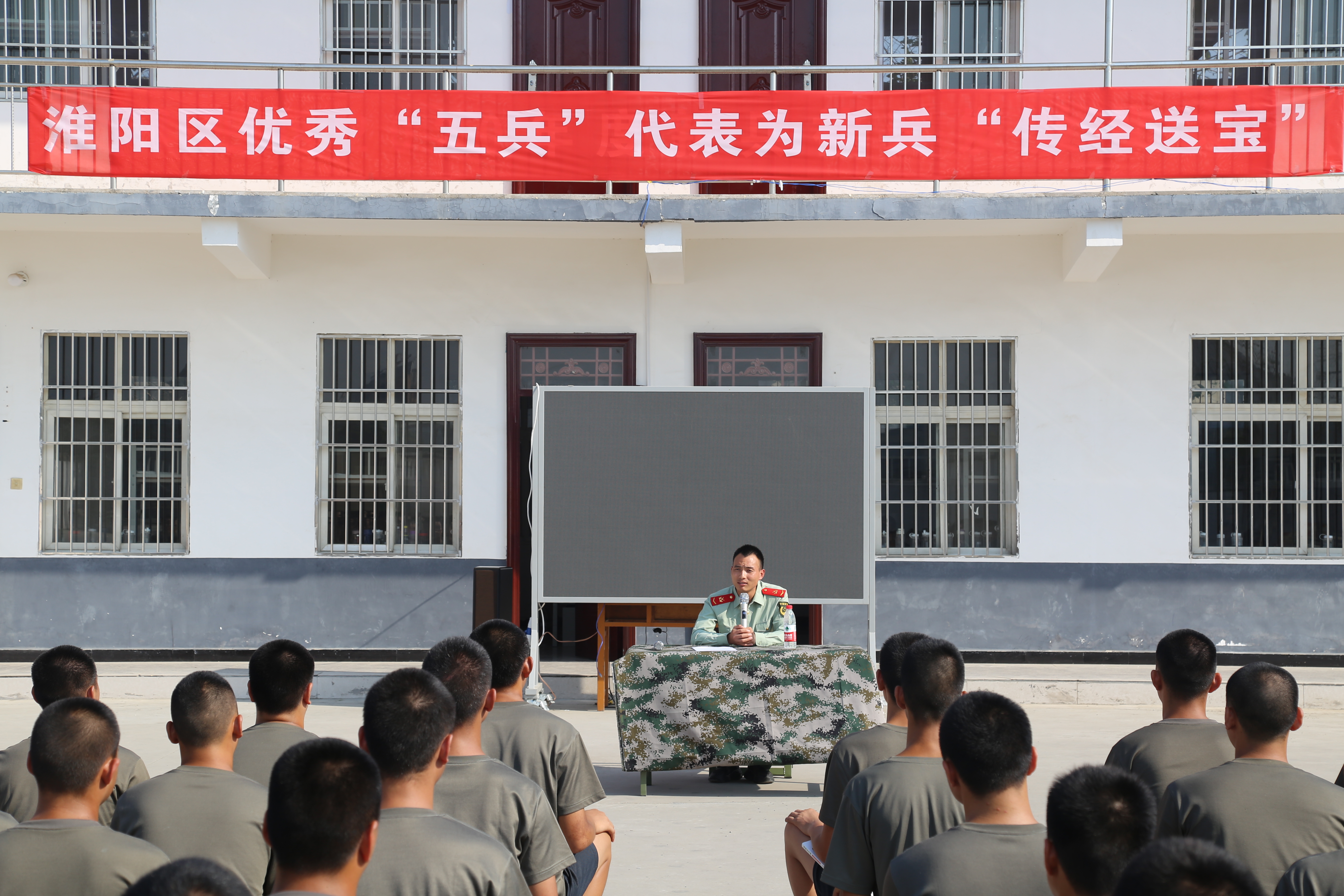 為了進一步激發新兵的工作訓練熱情,堅定新戰士立足軍營,獻身國防的信念。9月8日,在年度新兵即將起運之際,淮陽區人武部組織優秀“五兵”代表(參戰老兵、現役士兵、退役士兵)為新兵“傳經送寶”活動,300余名新兵一起聆聽優秀“五兵”代表精彩講課。