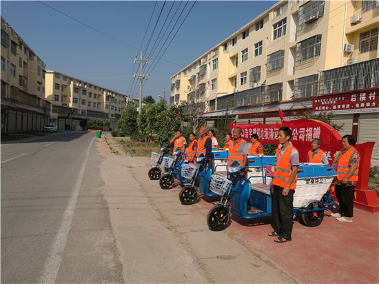 9月12日上午,西華縣西華營鎮后樓行政村迎來了一件大喜事,周口浩宇建筑垃圾清運有限公司董事長陳雨生一行一大早來到西華營鎮后樓行政村,為后樓村捐贈價值兩萬余元嶄新的環衛垃圾清運電動車4臺,以全力打造美麗鄉村,改善人居環境,為決戰決勝脫貧攻堅獻上了一份愛心。鎮人大主席姚衛民、后樓行政村黨支部書記高運動出席捐贈儀式。
