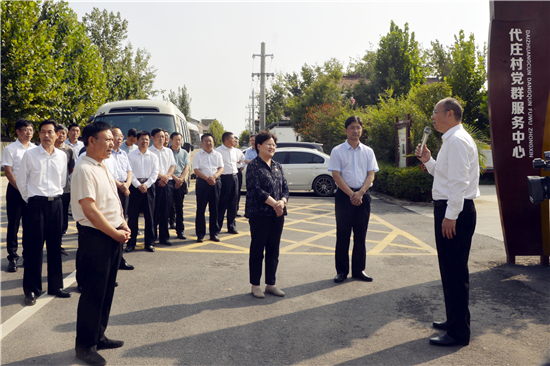 在東壩頭鎮(zhèn)張莊村,考察團(tuán)沿著習(xí)近平總書記的視察足跡,一路走,一路看,詳細(xì)了解張莊村美麗鄉(xiāng)村建設(shè)、農(nóng)業(yè)產(chǎn)業(yè)布局、鄉(xiāng)村旅游發(fā)展等方面的取得的成果,對(duì)張莊村圍繞“一院一景”“記得住鄉(xiāng)愁”的設(shè)計(jì)理念,充分利用破舊房屋、無人居住房屋、空閑廢地,精心打造特色亮點(diǎn)的做法十分贊賞。每到一個(gè)點(diǎn),考察團(tuán)成員們聽得認(rèn)真、討論得也很熱烈,并與該縣有關(guān)人員進(jìn)行細(xì)致具體的溝通與交流,認(rèn)真學(xué)習(xí)先進(jìn)經(jīng)驗(yàn)和典型做法。