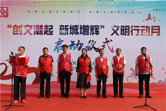 9月13日上午,市城鄉(xiāng)一體化示范區(qū)“創(chuàng)文潮起,新城增輝”文明行動(dòng)月主題活動(dòng)啟動(dòng)。市委宣傳部副部長(zhǎng)李向宏,區(qū)領(lǐng)導(dǎo)韓華、張曉、王宇飛、王軼、胡海濤出席啟動(dòng)儀式,市委宣傳部及示范區(qū)500名志愿者參加活動(dòng)。示范區(qū)紀(jì)委書記韓華宣布儀式啟動(dòng),副處級(jí)調(diào)研員王磊主持當(dāng)天的儀式。