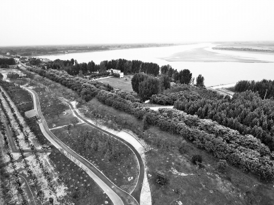 沿黃生態廊道示范工程(開封段)黃河大堤段已現芳容,全段共13.5公里長,內部設置慢行系統。