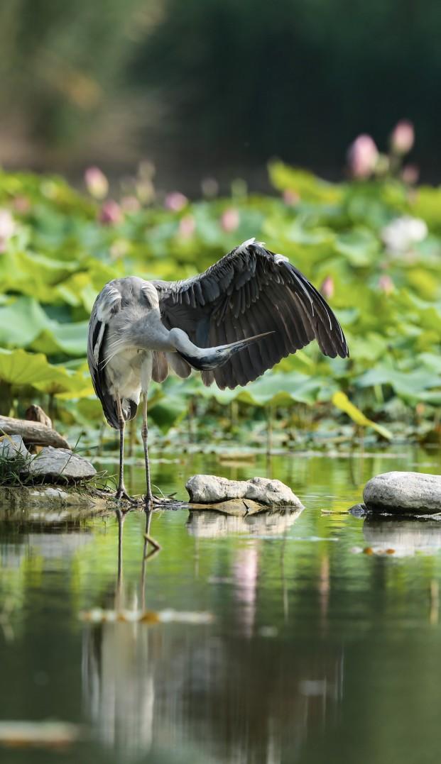 “人退了,鳥才能進嘛。”劉繼恩補充說,遠處的水面上,不時有水鳥掠過。