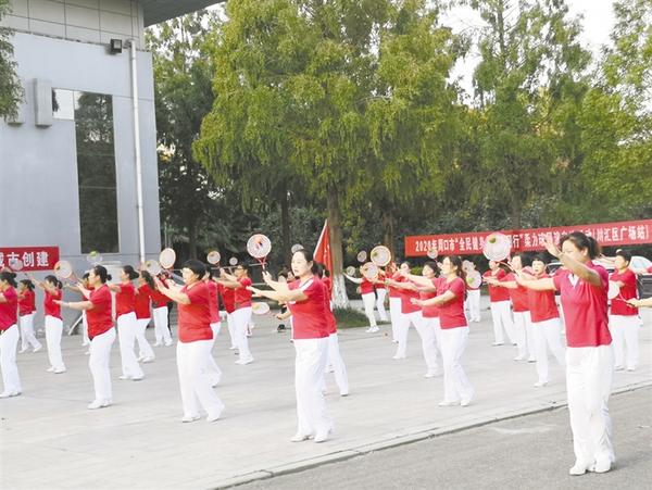 9月20日,2020年周口市“全民健身與‘創(chuàng)文’同行”柔力球展演交流活動在川匯區(qū)廣場舉行。圖為展演現(xiàn)場。 記者 竇娜 攝
