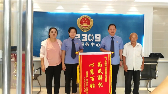 經過勸說,雙方各自做出讓步,胡某某也很后悔自己動手打人的行為,率先表達歉意,并主動賠償2000元,馮某某對處理結果很滿意,雙方握手言和。事后,馮某某特地制作了一面“心系百姓、為民解憂”的錦旗,并送到淮陽人民區檢察院,以表達感謝之情。