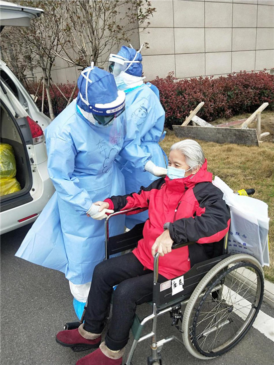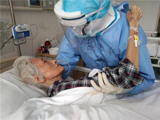 今年74歲的李秀紅,不僅感染新冠肺炎,而且罹患老年癡呆,生活需要時時照顧,而且剛入院時,對陌生環境的恐懼造成她心情壓抑,天天不說話,時不時落淚。為了讓老人放下心理包袱,胡奔奔在進行哄喂吃飯、服藥等正常護理之余,經常陪老人聊天、唱歌,后來老人情緒明顯好轉,還主動與胡奔奔一起扭起了舞蹈。后來,老人康復出院時,雖然無言 卻一直緊緊抓著胡奔奔的手久久不愿放開。胡奔奔說,那一刻,她落淚了,但心里確實說不出的高興。