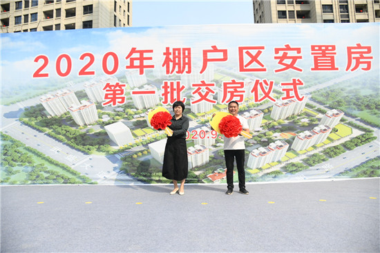 9月27日,2020年棚戶區安置房第一批交房,德和家園業主代表喜領鑰匙。記者 王映 攝 (③2)