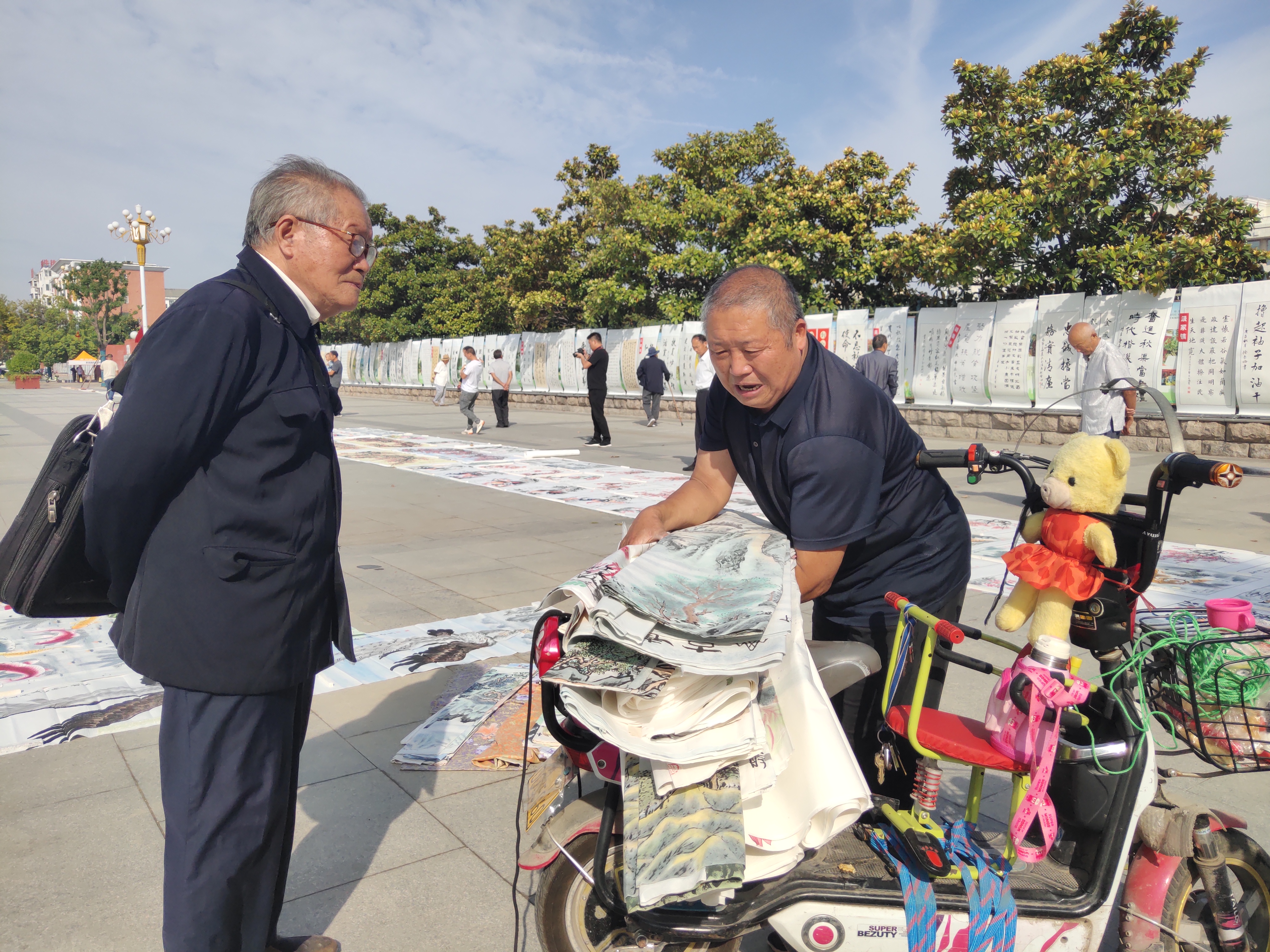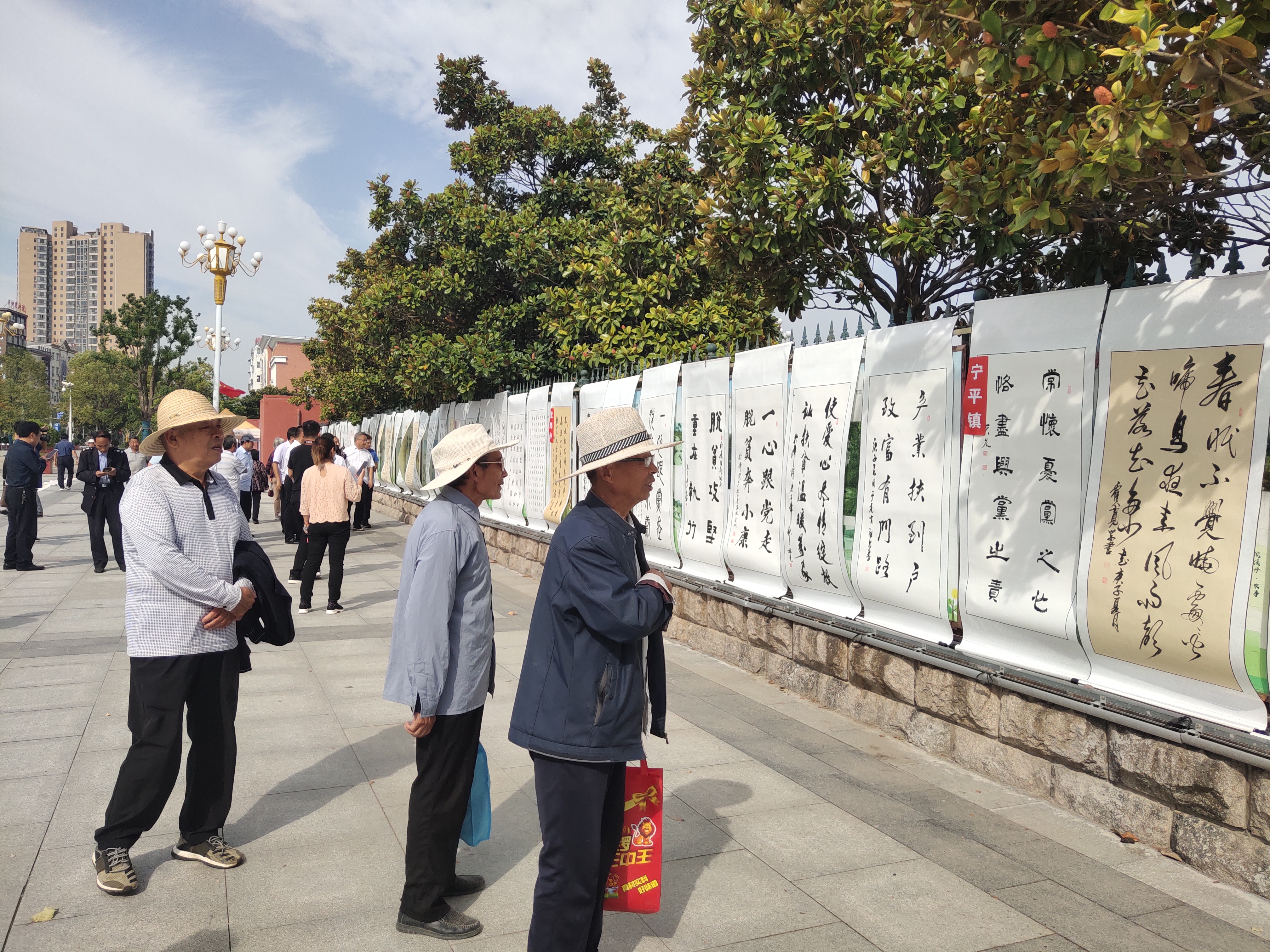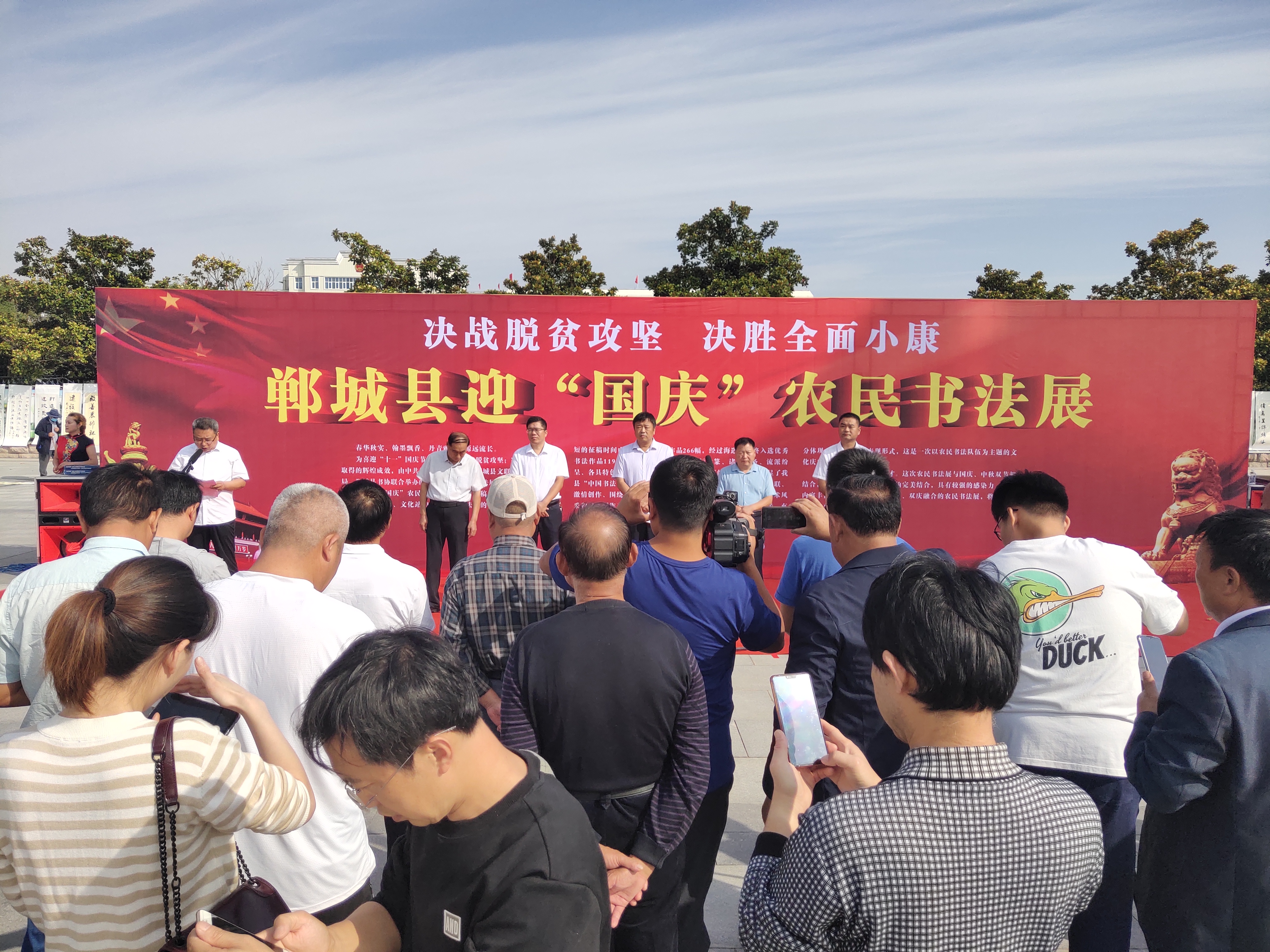 9月28日上午,由鄲城縣委宣傳部、縣文聯、縣文廣旅局、縣書協聯合舉辦的迎“國慶”農民書法展在世紀廣場舉行。該縣人大常委會主任李建軍,縣政協主席王偉,縣委常委、宣傳部長吳青鋒等出席活動。