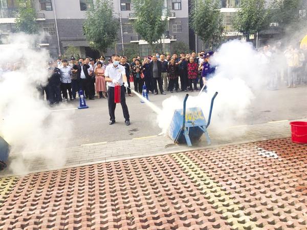 9月28日,一場(chǎng)熱鬧有序的消防安全演練在開發(fā)區(qū)太昊路辦事處許寨社區(qū)舉行。消防救援隊(duì)員、公安民警、辦事處職工、社區(qū)居民、物業(yè)服務(wù)人員等500多人現(xiàn)場(chǎng)參觀、參與消防演練。圖為消防演練現(xiàn)場(chǎng)。記者 王泉林 攝 ③2