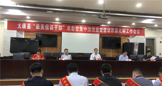 會上,縣公安局局長李根闖同志宣讀了《太康縣首屆“最美信訪干部”表彰決定》;參會領導為首屆“最美信訪干部”代表頒發了榮譽證書;遜母口鎮王登領、朱口鎮李道倉、大許寨鎮劉二振等三名同志代表全縣首屆“最美信訪干部”做了典型發言;縣委政法委常務副書記、信訪局黨組書記、局長趙春麗同志傳達了中央、省、市有關會議和批示精神,并通報全縣赴京越級訪情況。