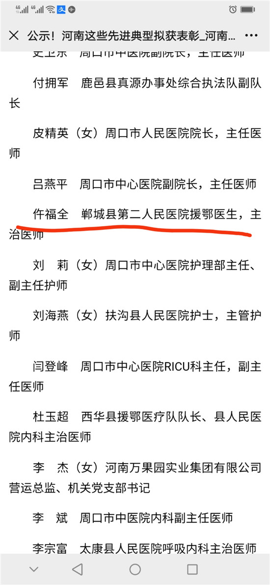 10月10日,河南省委、省政府表彰了一批抗擊新冠肺炎疫情先進個人、河南省抗擊新冠肺炎疫情先進集體、河南省優秀共產黨員、河南省先進基層黨組織。其中,鄲城縣副縣長肖煒,縣第二人民醫院援鄂醫生、主治醫師仵福全,縣人民醫院重癥醫學科ICU主任、副主任醫師王劍橋3位同志,被評為河南省抗擊新冠肺炎疫情先進個人。