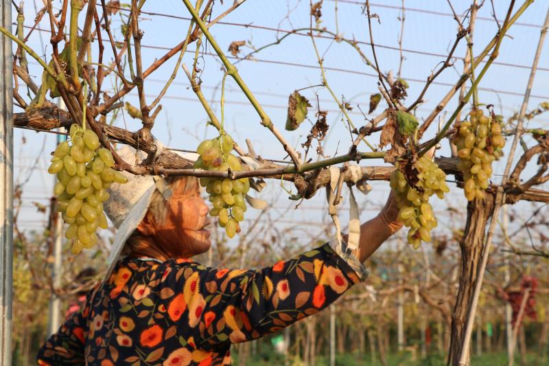 隨著示范引領和套袋技術的推廣與應用,華恩的華山梨、金手指葡萄等特色水果,從外觀到內質、從采供期到銷售價,有了大大提高。“由于咱家水果全程采用無公害種植,2020年9月取得了國家綠色食品認證。”張春英介紹,現在華恩生產的水果已經走進鄭州、武漢等周邊城市的商超銷售。平時來園子里采摘的游客絡繹不絕。