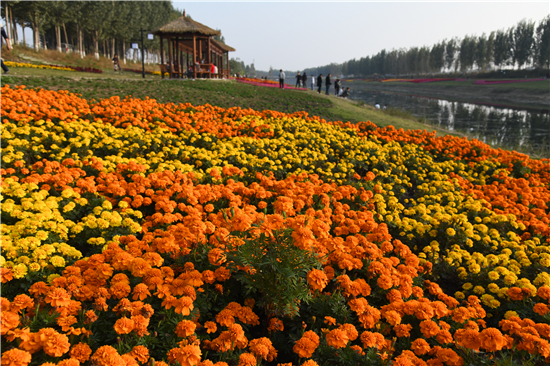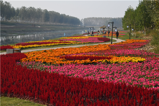 10月20日,市民在商水縣高標準農田灌溉渠兩岸游玩。