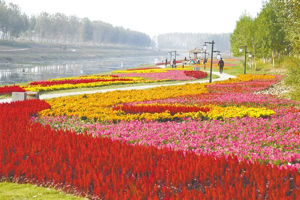 10月20日,市民在商水縣新枯河景觀帶游玩。商水縣把“創文”和農村人居環境整治結合在一起,加大對城鄉接合部的治理力度,建成街頭小公園、村頭小游園、濱河景觀帶100多處,美化了城市環境,方便了市民休閑游玩。 記者 付永奇 攝